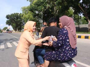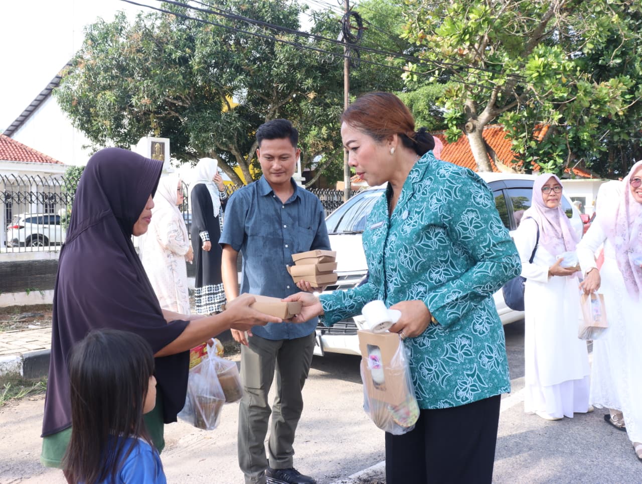 Pelaksana Tugas (Plt) Ketua TP PKK Kabupaten Lampung Tengah, Ni Ketut Dewi Nadi Komang Koheri berbagi takjil bersama Pokja Bunda PAUD, IGTKI-PGRI, Himpaudi, DWP Dinas Pendidikan dan Kebudayaan, serta Perwosi di depan Rumah Dinas Wakil Bupati Kabupaten Lampung Tengah, Selasa (10/03/2026).